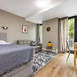 Dit appartement heeft een zitruimte, is compleet met geluiddichte ramen en biedt gemakken zoals airconditioning. Deze accommodatie omvat over een TV en een flatscreen TV met satellietzenders, en essentiële veiligheidsvoorzieningen zoals rookmelders. De badkamer met een apart toilet, een douche en een wastafel is ook uitgerust met een haardroger en badlakens.
